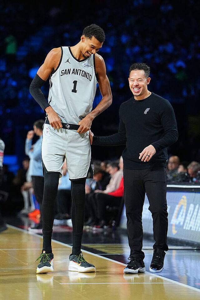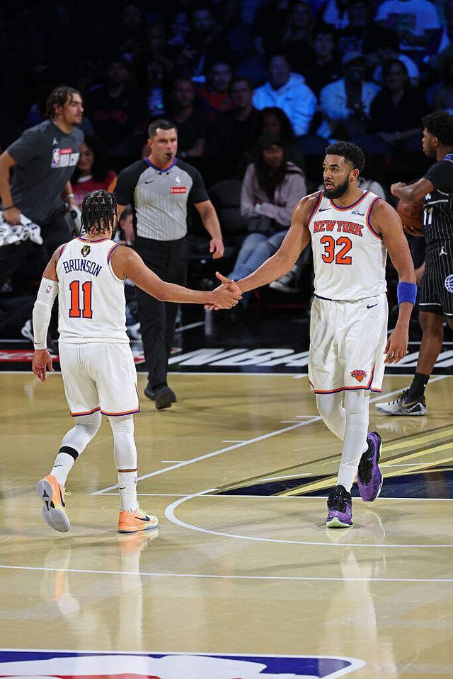 拉斯维加斯,NBA杯半决赛,斗力,更斗智。纽约尼克斯与奥兰多魔术的比赛,核心球员的成色,决定了比赛的最终走向。跟布伦森和唐斯相比,班凯罗还明显差着火候。你能感觉到班凯罗十分想要帮助球队实现突破,拿下这场关键的比赛,将魔术表演带到NBA杯决赛的赛场。但有时候,用力过猛反而会导致过犹不及。首节比赛,魔术的确开了个好头,取得了3分领先。然而在之后的三节比赛中,稳扎稳打的尼克斯还是展现了更强的底蕴——他们在第二节实现了反超,并且在之后的比赛中一直掌握着主动。哪怕萨格斯拼到受伤退赛,最后只能坐着轮椅离开赛场,魔术也终究没能扭转颓势。班凯罗25分8篮板3助攻1抢断的数据并不算差,但三分线外7投0中的表现和5次失误带来的伤害,还是难免令人感到遗憾。哪怕下半场这位奥兰多头号球星做出了改变,想要带队反扑,最终也只能梦碎拉斯维加斯。帮助尼克斯顶住魔术压力的,正是布伦森和唐斯这对搭档。布伦森再次诠释了何谓“人狠话不多”。在一场定胜负的NBA杯半决赛的赛场,布伦森又一次化身“大场面先生”,全场27投16中,三分球5投2中,轰下40分的同时送出8次助攻,成了尼克斯“拆穿”魔术的急先锋。为什么人们在谈论独行侠送走东契奇的那笔交易多么愚蠢的时候,总是会在后边加上一句“当初放走布伦森就已经暴露了尼科的水平”?看着这位永远胸有惊雷却面如平湖的“硬核狠人”在NBA杯大杀四方,想来大家都已经得到了上面那个问题的答案。纽约外线有布伦森统率三军,内线还有唐斯坐镇。魔术的锋线资源可谓豪华,即便瓦格纳兄弟双双因伤高挂免战牌,奥兰多人依然拥有班凯罗、小卡特、比塔泽、席尔瓦、艾萨克等一众战将。然而在今天,“硬糖先生”却是真正的内线王者。在魔术一众锋线的“包围”之中,唐斯仍明显技高一筹,全场11投9中贡献29分8篮板2助攻1抢断1封盖,填满数据栏。本赛季,唐斯场均可以贡献22.4分11.9篮板3.2助攻0.8抢断0.8封盖,虽然与约老师那样的武林泰山北斗相比仍有差距,但也绝对是本赛季中锋位置第二人的有力竞争者。在迈克-布朗执掌尼克斯教鞭之后,这支球队的确曾一度表现挣扎。然而随着时间的推移,在逐渐适应了新的战术体系之后,纽约人正逐渐回到正轨。此役战胜魔术之后,他们又一次迎来了5连胜。或许这支球队仍未调整到最佳状态,但在杯赛这种一战定乾坤的特殊赛制之下,任何小觑他们的球队,都将付出惨痛的代价。能在NBA杯走到半决赛的球队,都不是善茬,没有哪支球队是理所应当取胜的,哪怕你是雷霆。因为马刺已经用一场精彩的胜利向全世界证明了这一点。文班亚马复出了,但他却没有首发。最初,看到米奇这样的排兵布阵,有多少球迷感到错愕?当雷霆首节确立11分领先优势的时候,又有多少球迷已经痛心疾首,恨不能现场高呼“米贼无能”?等到最终马刺终结雷霆连胜,昂首挺进本赛季NBA杯决赛之后,又有多少马刺球迷,上演川剧变脸,恨不能现场赞颂“米圣名帅有能”?没有让文班亚马首发,甚至在整个第一节都死死把法国“独角兽”死死按在板凳上的选择的确非常冒险,但这却是米奇这位被波波维奇钦点的接班人在现有条件下的最优解。文班能出战这场半决赛不假,但文班需要严格遵守上场时间限制也是真的。这种情况下,米奇选择在第一节彻底“封存”文班,虽然确实是个十分冒险的决定,却也让文班的出场时间不至于被切的过于细碎,并且为决胜时刻文班能够留在场上创造了条件。事实证明,米奇的这一波操作,堪称妙手。首节比赛马刺的确非常被动,但随着第二节文班登场打了7分19秒,马刺便夺回了比赛的主动权。第三节文班的出场时间再度缩水到不足5分钟,但气势如虹状态出色的马刺众将却在福克斯的带领下众志成城,不但抵挡住了亚历山大的爆发式输出,还成功反超了比分。到真正决定胜负的第四节,得益于”时间管理大师“米奇的精妙操作,文班拥有了8分32秒的宝贵出战时间,在生死时刻,他始终能留在场上。文班也的确没有辜负米奇的妙手,在第四节,这位马刺大杀器单节贡献15分,帮助球队最终反败为胜,晋级决赛。马刺能击败雷霆,场上的球员自然是功不可没。瓦塞尔、卡斯尔、福克斯、哈珀都有亮眼发挥,尚帕涅、凯尔登-约翰逊、科内特、巴恩斯也都在尽心尽力的完成了自己的任务。至于文班的作用更不用说,+21的正负值足以说明他对比赛的巨大影响力。然而,米奇在这场半决赛的排兵布阵,同样值得球迷们献上敬意。在与戴格诺特的这场智斗之中,米奇显然才是技高一筹的那一方。波波维奇的眼光,还是那么毒辣。(NBA)